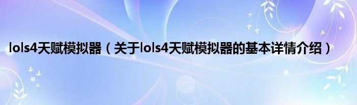 lols4天赋模拟器(关于lols4天赋模拟器的基本详情介绍)