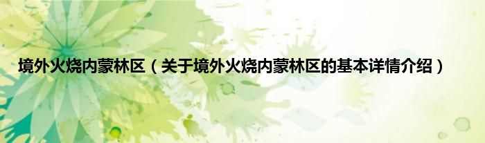 本文关于境外火烧内蒙林区的基本详情介绍就讲解完毕,希望对大家有所帮助。