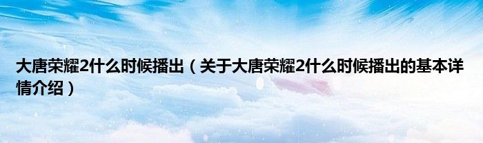 本文关于大唐荣耀2什么时候播出的基本详情介绍就讲解完毕,希望对大家有所帮助。