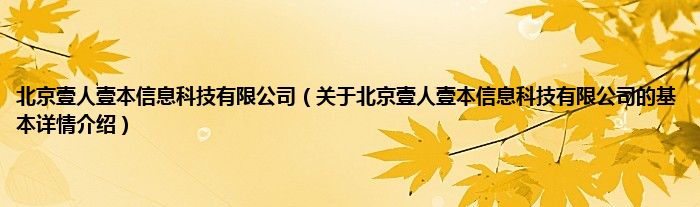 北京壹人壹本信息科技有限公司(关于北京壹人壹本信息科技有限公司的基本详情介绍)