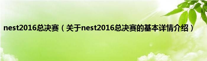 nest2016总决赛(关于nest2016总决赛的基本详情介绍)