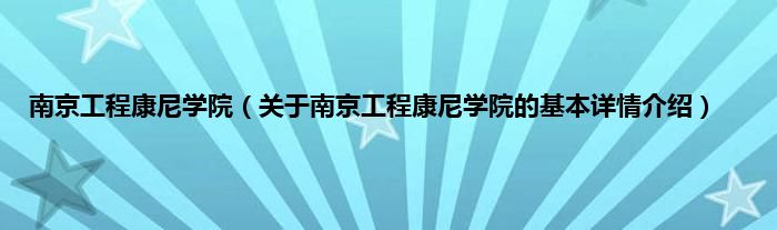 本文关于南京工程康尼学院的基本详情介绍就讲解完毕,希望对大家有所帮助。