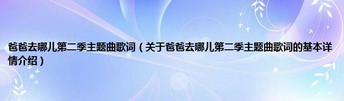 本文关于爸爸去哪儿第二季主题曲歌词的基本详情介绍就讲解完毕,希望对大家有所帮助。