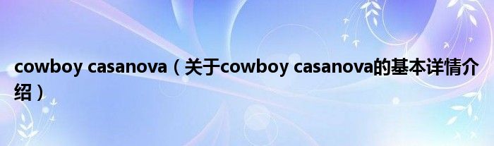 本文关于cowboy casanova的基本详情介绍就讲解完毕,希望对大家有所帮助。