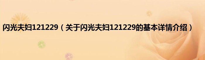 闪光夫妇121229(关于闪光夫妇121229的基本详情介绍)