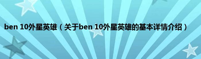 本文关于ben 10外星英雄的基本详情介绍就讲解完毕,希望对大家有所帮助。