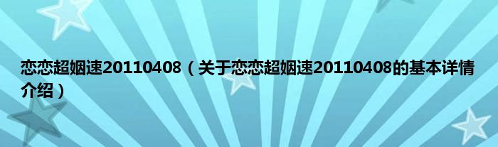 本文关于恋恋超姻速20110408的基本详情介绍就讲解完毕,希望对大家有所帮助。