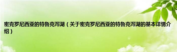 本文关于密克罗尼西亚的特鲁克泻湖的基本详情介绍就讲解完毕,希望对大家有所帮助。