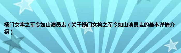 本文关于杨门女将之军令如山演员表的基本详情介绍就讲解完毕,希望对大家有所帮助。