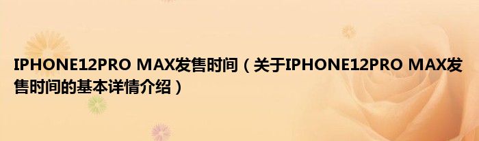 本文关于IPHONE12PRO MAX发售时间的基本详情介绍就讲解完毕,希望对大家有所帮助。