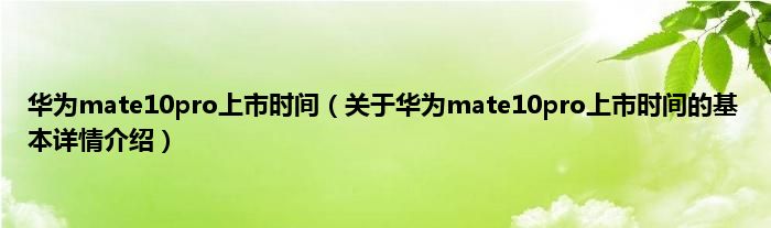 本文关于华为mate10pro上市时间的基本详情介绍就讲解完毕,希望对大家有所帮助。