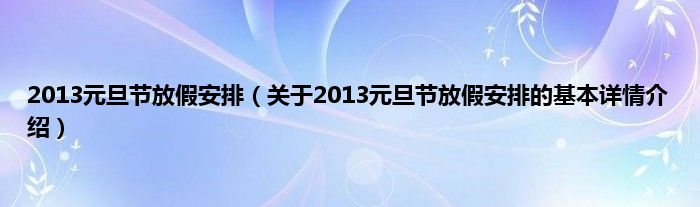 本文关于2013元旦节放假安排的基本详情介绍就讲解完毕,希望对大家有所帮助。
