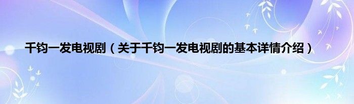 本文关于千钧一发电视剧的基本详情介绍就讲解完毕,希望对大家有所帮助。