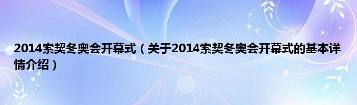 本文关于2014索契冬奥会开幕式的基本详情介绍就讲解完毕,希望对大家有所帮助。