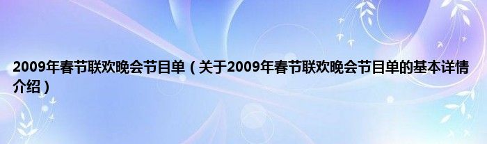 本文关于2009年春节联欢晚会节目单的基本详情介绍就讲解完毕,希望对大家有所帮助。