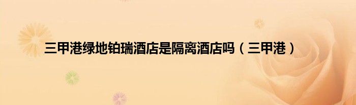 以上就是【三甲港绿地铂瑞酒店是隔离酒店吗,三甲港】相关内容。