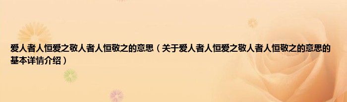 爱人者人恒爱之敬人者人恒敬之的意思(关于爱人者人恒爱之敬人者人恒敬之的意思的基本详情介绍)