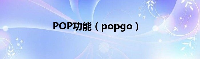 大家好,小问来为大家解答以上问题。POP功能,popgo这个很多人还不知道,现在让我们一起来看看吧!