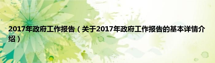 本文关于2017年政府工作报告的基本详情介绍就讲解完毕,希望对大家有所帮助。