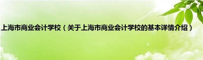 本文关于上海市商业会计学校的基本详情介绍就讲解完毕,希望对大家有所帮助。