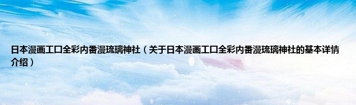 本文关于日本漫画工囗全彩内番漫琉璃神社的基本详情介绍就讲解完毕,希望对大家有所帮助。