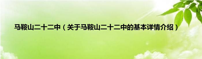 本文关于马鞍山二十二中的基本详情介绍就讲解完毕,希望对大家有所帮助。