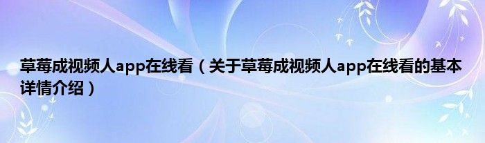 本文关于草莓成视频人app在线看的基本详情介绍就讲解完毕,希望对大家有所帮助。