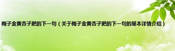 梅子金黄杏子肥的下一句(关于梅子金黄杏子肥的下一句的基本详情介绍)
