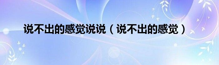 大家好,小问来为大家解答以上问题。说不出的感觉说说,说不出的感觉这个很多人还不知道,现在让我们一起来看看吧!