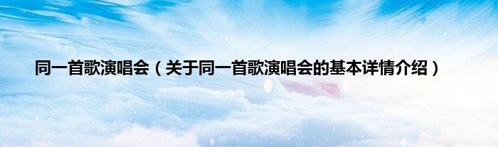本文关于同一首歌演唱会的基本详情介绍就讲解完毕,希望对大家有所帮助。