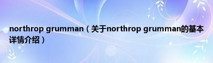 本文关于northrop grumman的基本详情介绍就讲解完毕,希望对大家有所帮助。