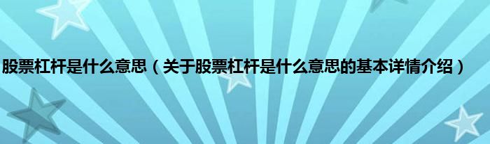 本文关于股票杠杆是什么意思的基本详情介绍就讲解完毕,希望对大家有所帮助。