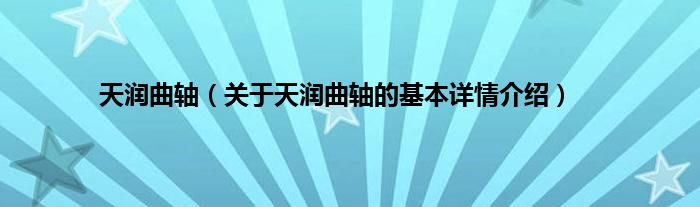 大家好我是小蝌蚪,天润曲轴,关于天润曲轴的基本详情介绍很多人还不知道,那么现在让我们一起来看看吧!