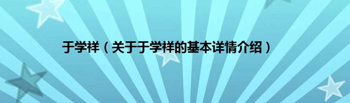 于学祥(关于于学祥的基本详情介绍)