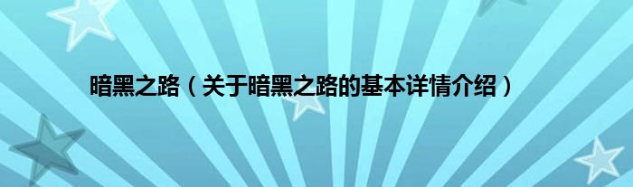 本文关于暗黑之路的基本详情介绍就讲解完毕,希望对大家有所帮助。