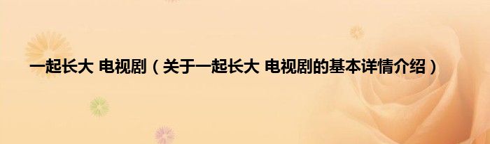 本文关于一起长大 电视剧的基本详情介绍就讲解完毕,希望对大家有所帮助。