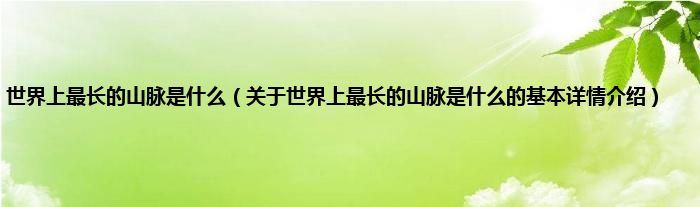 本文关于世界上最长的山脉是什么的基本详情介绍就讲解完毕,希望对大家有所帮助。
