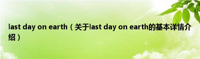 本文关于last day on earth的基本详情介绍就讲解完毕,希望对大家有所帮助。