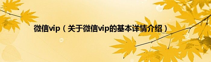 本文关于微信vip的基本详情介绍就讲解完毕,希望对大家有所帮助。
