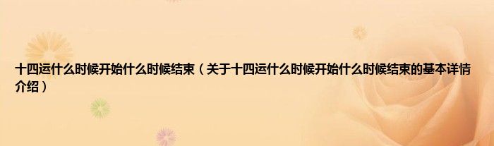 本文关于十四运什么时候开始什么时候结束的基本详情介绍就讲解完毕,希望对大家有所帮助。