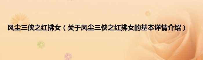 本文关于风尘三侠之红拂女的基本详情介绍就讲解完毕,希望对大家有所帮助。