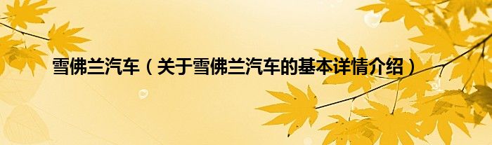 本文关于雪佛兰汽车的基本详情介绍就讲解完毕,希望对大家有所帮助。