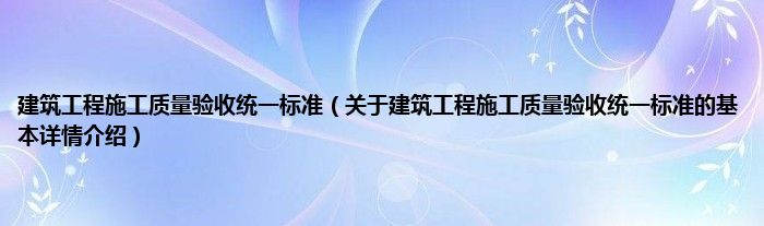 本文关于建筑工程施工质量验收统一标准的基本详情介绍就讲解完毕,希望对大家有所帮助。