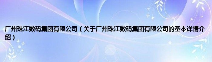 本文关于广州珠江数码集团有限公司的基本详情介绍就讲解完毕,希望对大家有所帮助。