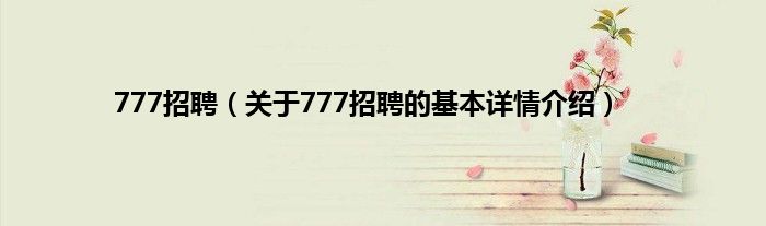 本文关于777招聘的基本详情介绍就讲解完毕,希望对大家有所帮助。