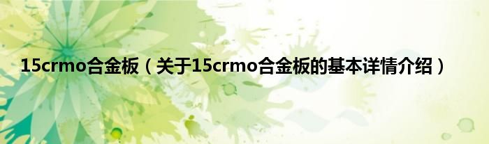本文关于15crmo合金板的基本详情介绍就讲解完毕,希望对大家有所帮助。