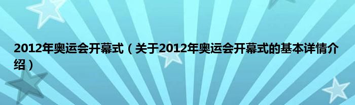 本文关于2012年奥运会开幕式的基本详情介绍就讲解完毕,希望对大家有所帮助。