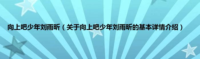 本文关于向上吧少年刘雨昕的基本详情介绍就讲解完毕,希望对大家有所帮助。