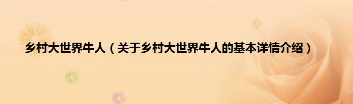 本文关于乡村大世界牛人的基本详情介绍就讲解完毕,希望对大家有所帮助。