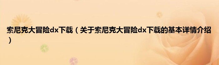 索尼克大冒险dx下载(关于索尼克大冒险dx下载的基本详情介绍)